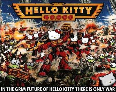 - RPG.net archives collected lots of crossovers: One version of TriCalvin, KingdomKarts. Warhammer 40,000 tends to be mixed more often than others, so there are Warhammer 40chibi, three-in-one "In the grim future of Hello Vader..." and even a picture of Tux in WH40K + Bunnies and Burrows + BESM. But In the grim future of Hello Kitty there is only SAN loss.