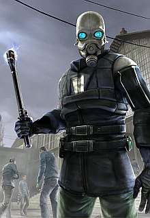 - The Combine Overwatch soldiers and Civil Protection officers in Half-Life 2, as demonstrated above. Apparently, an early version of the script had City 17's air unbreathable, so that everyone wore gas masks. This was dropped, but the Combine gas masks weren't. It should also be pointed out that Overwatch soldiers required the mask to include their vocoder, due to their vocal cords being ripped out (visible when you see the topless Overwatch model in Nova Prospekt), and Civil Protection officers would need them for anonymity, due to being rather brutal to citizens. The Gas Masks actually work against them at times. Using the "'bug bait" on a normal person gets no reaction, but using it on a Civil Protection Officer or an Overwatch Soldier causes them to flail about, apparently choking. That might just be because they're Friendly Fireproof.
