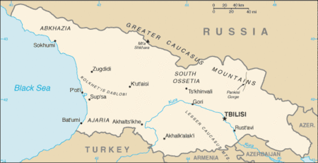 Not that Georgia [1] -- the former Soviet state, known to the locals as საქართველო (Sakartvelo). Formerly the Georgian SSR, it became independent with the collapse of the USSR. But the history of country goes much much back. It was mentioned in Greek myths as "Kolkhis" and since then it has always been a target of many empires due to its strategic location. It has been invaded by Romans, Byzantians, Persians, Arabs, Mongols, Seljuks, Ottomans, Russians and basically every major forces of nearby regions. Mostly it was Muslim countries though, because Georgia served as a "Gatekeeper of Christianity" throughout the history, leading to the fact that Christianity was associated with nationality, it was the main difference between invaders and Georgians. Most of the time inthe history Georgia was being invaded and fought against direct invasions until enemies found more clever, indirect ways for conquest. Georgia was united as a whole Georgian state in X century, followed by it's rise to power in XI under King David V the builder, who drew all the enemies out, expanded the territory and made the following Golden age possible. After that though everything went downhills and Georgia was under influence of several different Empires until 1918, when it became independent for 3 years, to be again conquered by soviet Russia till 1991, when it was the first country to separate from USSSR. The capital is Tbilisi, which was built in V century for this very purpose.