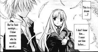 - Female dreaming of male example: Nanoha dreams of Yuuno via telepathy in the very first episode of Magical Girl Lyrical Nanoha. How much they fit the "Romantic love is practically guaranteed" part of this trope mostly depends on which side of the Ship-to-Ship Combat you are.