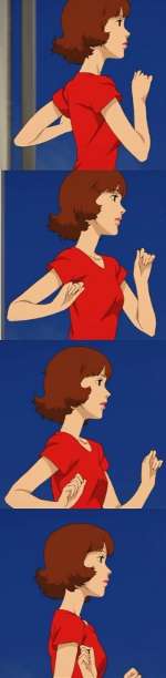 - During the ending credits of Blue Drop the silhouettes of Hagino and Mari are shown running in this manner. This is a bit weird, since in the series they run normally and generally don't behave overly girly.