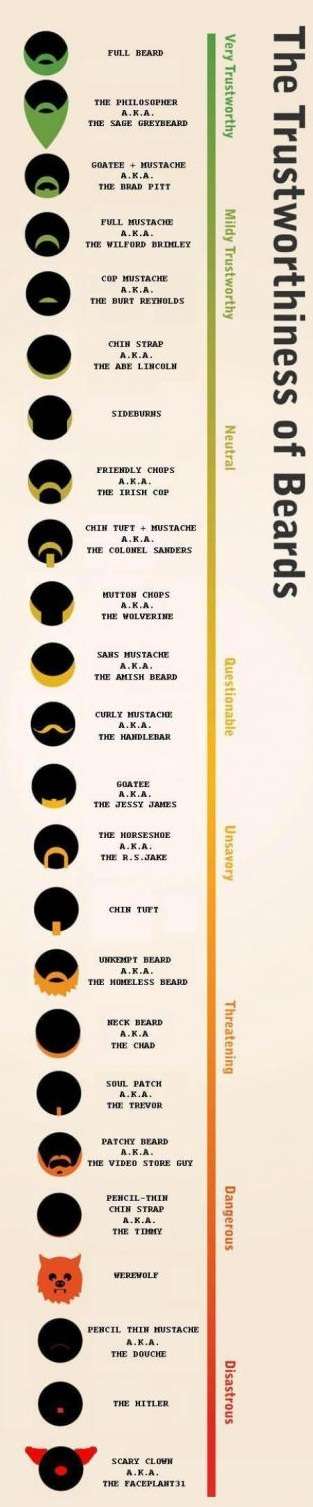 By default Heroes tend towards clean shaves, whether it's because of artistic inertia or simple cultural popularity is up for grabs.[1] Sometimes movies made in countries or/of eras that are friendlier to facial hair have a higher number of heroes and extras with beards and mustaches, though it is still very common to find anachronistically clean shaven male main characters. A full, thick, and above all well trimmed beard is almost always a sign of the good guys (Dwarfs, Santa, mentor characters, etc). The Obi-Wan often has one. You will never, ever see a good character with a Fu Manchu mustache, nor one with a pencil thin moustache, unless you are watching an Errol Flynn movie, or in fact any movie from the 1930s or 40s. Stubbles are an exception, as they're usually a sign of Antiheroism and Badassitude.