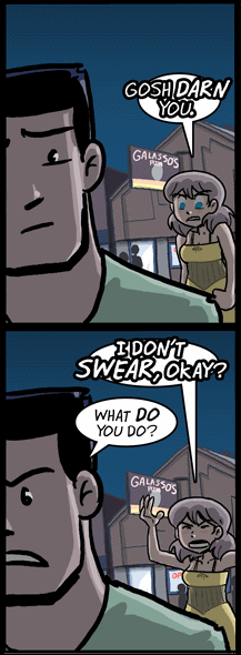 - Nodwick - Piffany, whose language is so comically mild that you know it's serious when she says "darn" or "crud".
