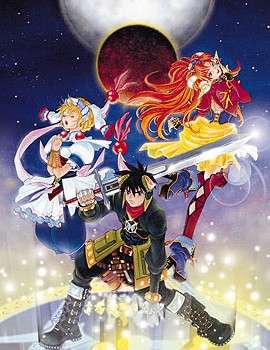 The plot kicks off with a Geohound (read: mercenary) named Ryudo being hired as a bodyguard to a girl named Elena, a Songstress of Granas (read: nun) who is taking part in a ritual to renew a seal that is secretly holding one of the pieces of a fallen evil god. Things don't go according to plan and Elena is possessed by the sealed evil ("the Wings of Valmar"), which manifests itself as a separate personality calling herself Millenia. With the destruction of this seal, the other pieces of Valmar sealed all over the world have gotten loose too, and both Ryudo and Elena are tasked with hunting them down. Naturally, it's not quite as simple as that and the game mostly deals with a Deconstruction of Black and White Morality.