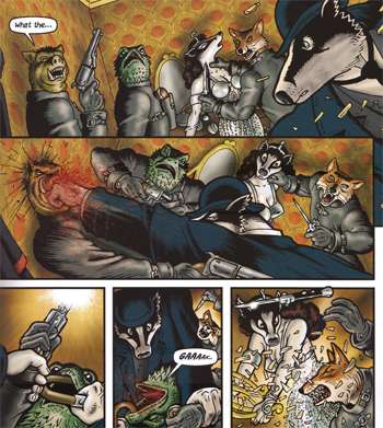 - Guns Akimbo: LeBrock wields guns in the comic like this. This is also apparent in the Grandville cover.
