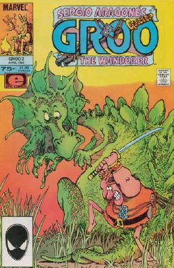 - ↑ The genuine reason is that Groo had zero to do with Marvel continuity other than being published by Marvel's creator-owned Epic imprint at the time -- the character was owned lock, stock and barrel by Sergio Aragones (the reason he did not publish Groo for years was that he wanted complete creative control and ownership and had been told by the Bigs that it just wasn't done in the industry, until Pacific Comics offered him just that.)