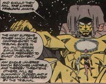 - Generally speaking though the Living Tribunal generally performs this function, being second only to The One Above All; IE Kirby/God from the above, who rarely makes appearances.