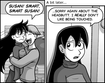 - El Goonish Shive has Susan and Vlad. Though some friends forget this (see also the next page). Eventually she tried to overcome this (see also the previous page).