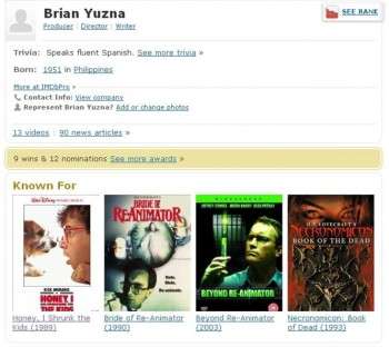 - ↑ From right to left: Necronomicon: Book of Dead (1993), Beyond Re-Animator (2003), Bride of Re-Animator (1990) and Honey, I Shrunk the Kids (1989)