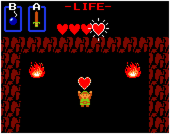 Games get more difficult as they go on. This is nigh-on universal. But when the Elite Mooks start dishing out epic levels of hurt, what's a poor hero to do? Well, they could Level Grind—if they were in an RPG. But they're in a Platform Game or some other variety of Action Game! Experience points are (almost) unheard of! Status Buffs are equally uncommon! Healing Potions and Health Food are dropped maybe once a level! What now? Enter the Heart Container—a well-hidden, but oh-so-rewarding, item that permanently increases the Life Meter of the lucky adventurer who finds it. Even games that don't have well-defined "stats," like Attack or Defense, can feature Heart Containers—lots of games do have Life Meters, after all, and the ability to take more hits without vaporizing is always a nice reward. It can even aleviate the pain of later levels somewhat.