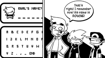 - Parodied in Super Effective, the side project of VG Cats creator Scott Ramsoomair, where the protagonist Red reminds Professor Oak that his Grandson is named "Douche".