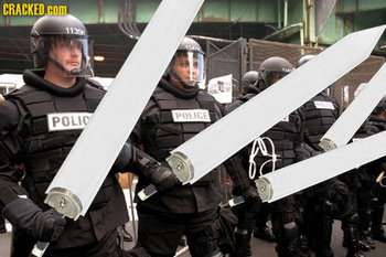 Given that a sword is a fairly useful melee weapon with a wide variety of uses (and historically, pretty much everyone who could get a sword would have one) this makes some sense. Still, given modern society typically prefers ranged weapons, it looks out of place. This can lead to improbable weapons that take the coolness of a sword and combine it with the effectiveness of a weapon modern to the work's universe, such as "gunswords." This is more of a Justified Trope than one might think, since at the very least, bayonets are still used, both for their practical uses in close combat when bullets run out, but also because they are able to puncture body armor that bullets can't (according to a bayonet article, a prototype was able to pierce a punching bag covered with aircraft aluminium and a ballistic vest).