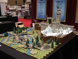Heroscape is a tabletop strategy game first published by Milton Bradley (a subsidiary of Hasbro) in 2004 (though it was transferred to Wizards of the Coast - also a Hasbro subsidiary - in 2008). The game is played on a three-dimensional battlefield made of interlocking plastic tiles, with each player commanding an army of figurines. Usually, the goal is to completely destroy the other player's army, but there are other variants. There is an unoffical-offical website with a very active community.