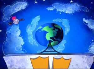 - Rocky and Bullwinkle - One of the introduction sequences was Rocky preparing to jump from a very high diving board into a tub of water tended by Bullwinkle. However, Rocky is a flying squirrel, so he flies around the circus tent, while Bullwinkle chases after him carrying the tub. As Rocky lands safely, Bullwinkle tumbles into the tub.