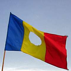 One feature of the demonstrations that became a potent symbol of the revolutions of 1989 was the flag with a ragged hole where the communist emblem had been. In Hungary, Romania, Bulgaria, Albania and East Germany, pre-war national flags had been adorned with red stars or the communist state coat of arms, and these were torn or cut from the flags by demonstrators. (The page image is the Romanian flag)