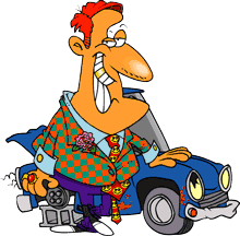 wreckedUsed" airplane dealership. Ben is even nastier than most characters of this type; not only does he sell Donald the eponymous flying jalopy, he also attempts to knock Donald off as part of an insurance scam. - The Looney Tunes short The Pest That Came to Dinner has Porky Pig trying to get rid of a termite. He enlists the aid of a fast-talking, shyster exterminator named Sureshot ("I'm here to help ya, son!") whose various schemes keep making things worse for Porky.