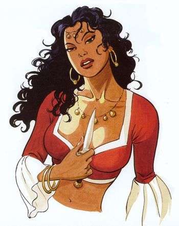 - Played with in Gypsy, from the same authors: The hero is a Gypsy, whose sister looks nothing like the standard Hot Gypsy Woman, but the evil Dark Action Girl looks a lot like Mejai (despite being Arabic).