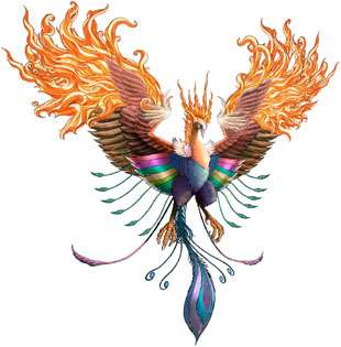A massive flying creature made of energy, commonly a predatory bird made of fire, is a common visual metaphor for Limit Breaks, fast transportation and other special abilities. Or just making you look that much more Badass. Dragons, moths and other winged creature shapes may also be used, up to Winged Humanoid. The origin of this trope seems to come from The Phoenix.