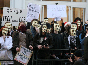 - Guy Fawkes masks were worn by members of the anti-Scientology movement, Project Chanology. This was inspired by the film/comic book, V for Vendetta.