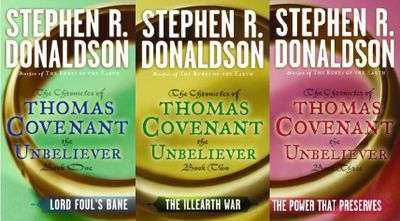 - As shown above, the latest edition of the first three Chronicles of Thomas Covenant novels are clearly meant to go each other. When place next to one another, they form a complete illustration of the title character's white-gold wedding ring.