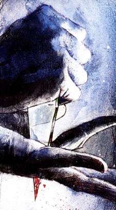- Arkham Asylum: A Serious House on Serious Earth has Batman impaling his hand on a piece of glass. The original script called for it to be merely scratched but the art depicted the glass going right through his hand.