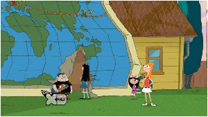- As seen in the page image, Ferb once unfolded a map from a roughly two by two inch square into a world map larger than the house it was leaning on.