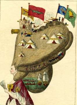 - Women (and occasionally men) will show off their wealth with crazy hairdos by way of embedded jewelery, hair extensions, or just the sheer amounts of time and hired help it takes to make (and maintain) such a hairdo. The Eighties alone may have been responsible for the hole in the ozone layer given the copious amounts of hairspray it took for some of those crazy styles.