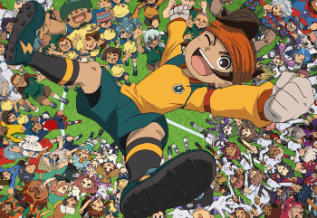 Inazuma Eleven is the hit football/soccer RPG Video Game then Anime then Manga series from Level 5. It follows the story of Endou Mamoru (or Mark Evans, if you don't like Japanese names), the spirited goalkeeper of Raimon Junior High's nearly-disbanded football team consisting of only seven members. Although Endou inherits his deceased grandfather's goalkeeping skills and love for soccer, his teammates are somewhat less motivated. Things take a drastic turn when legendary ace striker Gouenji Shuuya moves to Inazuma town. Desperate to recruit more members before the school shuts down the soccer club and also hoping to participate in the celebrated national Football Frontier tournament, Endou tries to convince Gouenji to join his team. However, Gouenji's arrival has also caught the attention of Teikoku Academy, the champion of Football Frontier for 40 consecutive years, who then proceed to arrange a "friendly match" with Raimon.