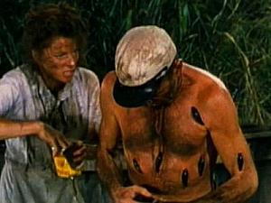 - In The African Queen, Charlie gets several leeches on him when he underwater repairing the ship. The movie subverts the typical trend of just tearing them off by having him be smart enough to force them to let go with salt.