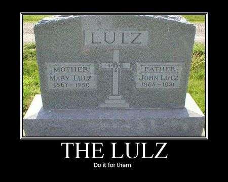 - 4chan and its associated... things (e.g. Encyclopedia Dramatica) are the ones who coined the term "for the lulz". Let's just leave it at that.