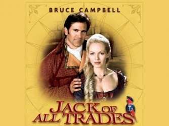 Jack of All Trades was a short-running action/comedy show that ran for one-and-a-half seasons in 2000, paired with Cleopatra 2525. Set in 1801, it is a spiritual relative of Steampunk series like The Adventures of Brisco County Jr. and The Wild Wild West, starring Bruce Campbell as Jack Stiles, an American secret agent sent to the fictional French-controlled island of Palau-Palau. Once there, he meets his British contact and Slap Slap Kiss love interest, fellow spy Emelia Rothschild, and together the two work to stop Napoleon Bonaparte and other threats to the United States. To the public, Jack serves as Emelia's mild-mannered manservant, but when trouble strikes, he transforms into a masked hero, the Daring Dragoon.