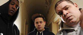 Pictured from left to right; Jus Allah, DJ Kwestion, Vinnie Paz