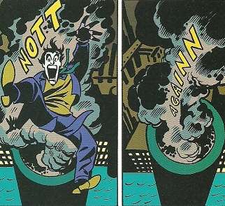 - Lampshaded in a story of West Coast Avengers where Magneto falls into a a factory chimney (a la the Joker pic above) from a fight with the Avengers and the whole building blows up. One of the Avengers asks the rest of the group if they really believe Magneto to be dead; the response was a unanimous, "Naaaaah!"