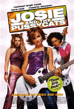 Josie and the Pussycats is a 2001 film adapted from the comic of the same name, starring Rachael Leigh Cook, Rosario Dawson and Tara Reid. It is about the titular all-female rock band getting the deal of a lifetime after struggling as an indie band -- a record deal with MegaRecords, one of the largest music labels in the world. Within a week, the band has skyrocketed to the top of the charts, and a legion of squeeing fans is following their every move. Unfortunately, there was some fine print in the contract that they should've read before they signed... you know, some stuff about having subliminal messages put in your music to sell stuff, and "dying tragically" in a plane crash or from an overdose if you find out and resist. That sort of thing.