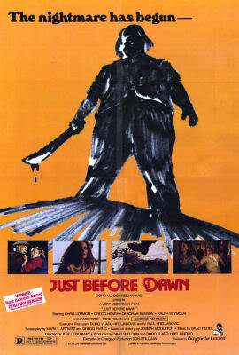 Just Before Dawn is a Slasher Flick from the year 1981. It was filmed by Jeff Lieberman, who also directed Squirm, Blue Sunshine, and Satan's Little Helper.