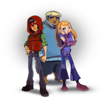 - Animesque: Interestingly, the art director, David Coleman, said, among other things, that the main characters were designed with shapes in mind. Triangles for Ray since he's proactive, squares for Gabe since it's balanced like how he prefers things, and circles for Allie with occasional sharp corners to show her general soft and pacifistic nature, unless you get her really mad. Their main creatures, Bob, Gargle, and Squeaky respectively follow the same patterns.