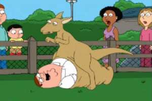 - Seen in an episode of Family Guy. Peter climbs into the pouch of a kangaroo, but the poor kangaroo can barely move.