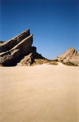 The American equivalent of the BBC Quarry, a distinctive set of striated sandstone slabs, dozens to hundreds of feet tall, sharply-angled and pointed at their tops. Familiar from its use as an exterior location in any number of Science Fiction programs and Westerns (including the films Blazing Saddles and The Magnificent Seven Ride Again, as well as the "Sleestak Diner" scene in Jay and Silent Bob Strike Back), and no few automobile commercials. It is also the location where the Brandeis-Bardin Institute was composited into for the first five seasons of Power Rangers as the command center building. The entire town of Bedrock in The Flintstones was constructed here. Probably best known from its several appearances on Star Trek over the years (especially the Original Series episode "Arena"), whence comes the popular nickname for one of the formations (and by extension the entire area). The movie Bill and Ted's Bogus Journey specifically points this trope out by having the boys watching said episode, before their robotic duplicates drag them out to the rock to kill them.