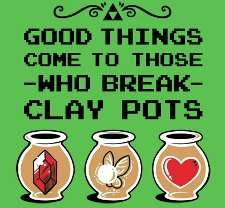 - The Legend of Zelda Skyward Sword tries to break this habit as well. You can open the cabinet in your Knight Academy dorm room for a free blue Rupee, but opening other people's cabinets rewards you with the message "You really shouldn't look through other people's things..." Since the surface has been going through an apocalypse for a few thousand years at this point in the timeline, there are no houses to vandalize, but you can break the pots in an ancient temple holding something very, very important and plot-related (protip: one of them always contains a fairy). There are hardly any pots in the residential quarters of Skyloft. Even sitting in other people's chairs gets you called out (Gortram scolds you for sitting in his chair, Fi says that you really should find that thing you were looking for before you take a rest). Most notably, breaking the chandelier with the heart piece on it in the Lumpy Pumpkin gets you a hilarious facial expression from the owner, a good talking-to, and unpaid work until you pay the thing off.