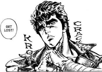 going to diealready dead in Fist of the North Star is a cracking noise coming from Kenshiro. Which is only to be expected as he's a Bruce Lee Clone. - In Real Bout High School, Midori gets cracking when she gets cracking.
