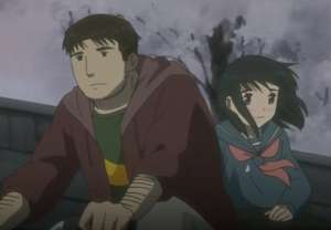 - Bittersweet Ending: At the end of the anime, Koshiro and Nanoka are together and happy, but there is unmistakable symbolism that, at the very least, they are still facing a very difficult time to come. The makers of the anime obviously wanted to make a point here.