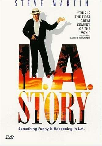 LA Story is a romantic comedy starring (and written by) Steve Martin. Harris K. Telemacher (Martin) is a weatherman in L.A. whose love life is assisted by a mysterious, magical talking freeway sign. The city of Los Angeles is a star as well, one of the themes of the movie being the often bizarre attributes of the city itself, from the weather to earthquakes to the "fake" citizenry. Marilu Henner, Victoria Tennant and a pre-Sex and the City Sarah Jessica Parker play the love interests of Harris. The movie is peppered with humorous cameo appearances, from Patrick Stewart's scene-stealing maître d'hôtel to Rick Moranis' gravedigger. (And yes, that is Paula Abdul as the rollerskater.)