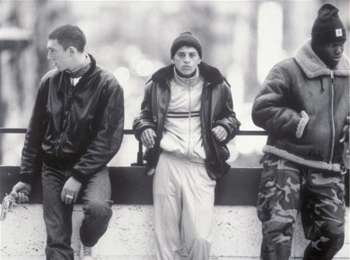 La Haine (English: "Hate") is a black and white French movie, made in 1995 and set in the modern-day slums of Paris—more precisely, in Seine-Saint-Denis, aka "93" or "neuf-trois" from its department number. Centering around a trio of banlieusards, the film follows them through a roughly 24 hour period from the morning after a riot, through run-ins with the police and unreliable fences, a night wandering around central Paris and back home. The three main characters are Vinz, a hot-headed Jew; Saïd, a wisecracking graffiti artist Beur; and Hubert, the oldest and wisest of the three, who is black. Together, they face prejudice not just because of their races but also because, as banlieusards, they are assumed to be thugs - a reputation they find themselves earning uncomfortably often.