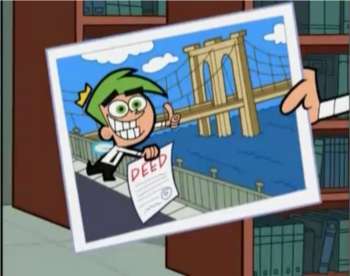 - Goes awry in at least one Superman comic—an alien buys the Brooklyn Bridge, then miniaturizes it and carries it off.