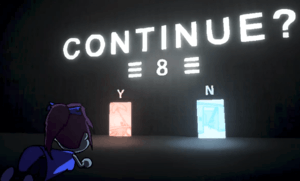 - Kaizo Trap (Web Animation) provides the page image. The protagonist gets a Continue? screen offering her a way out of her trapped in a video game situation, but if she takes it she will be going home alone, without her boyfriend that was also sucked into the game.