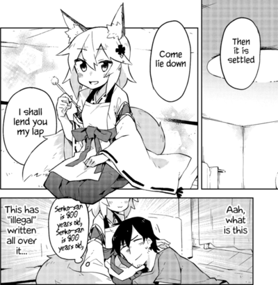 - In Spice and Wolf, Holo's human form is explicitly described in every adaptation as that of a fifteen year old girl, in spite of being over four-centuries old and implied to be more experienced in "that" aspect of life than Lawrence (who has actually embezzled his mentor's treasury as a boy to visit houses of ill-repute). Though bear in mind the "legal age" does not quite exist in Medieval Times yet, so Holo's frankness with her sexuality is not so much squicky as it is unusually "improper" for a young lady of her era and in-universe Values Dissonance due to lacking human social mores.