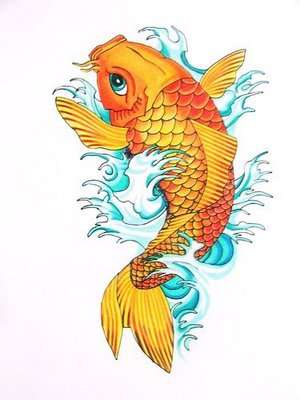 Carp have a strange tendency to appear unusually powerful in fiction, often being gigantic. Giant Carp are venerated for being colorful and allegedly wise pond dwellers, especially in Japan. Sort of like swimming parrots. They are known for their ability to jump many feet into the air and their long lifespan, something which is usually forgotten amongst their more domesticated, ill-kept brothers called goldfish and (in Japan) koi. According to legend, a sufficently old and powerful carp that is able to climb a waterfall may even become a dragon.