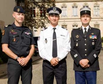 - National Gendarmerie (Gendarmerie Nationale): A part of the Gauls With Grenades, this military police force essentially covers the French countryside and small towns. They wear kepis. The riot control role is shared by the Gendarmerie Mobile units, which, as their name implies, are part of the Gendarmerie.