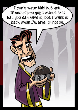 In games like MMORPGs, powerful items (looted or not) often come with additional character requirements that must be met before they can be used. These requirements—which can include level, class, stats, fame, and even karma—prevent players from purchasing massively overpowered gear and spoiling the challenge, and as such are the bane of the Munchkin.
