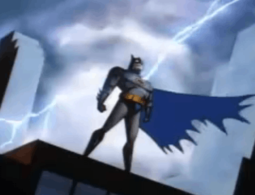- The opening theme to Batman: The Animated Series. Batman fights crooks in darkness, and the police wonder who it could be. The theme ends with the crooks tied up and a silhouette of Batman, standing on the roof of a building. A flash of lightning confirms his presence, before he disappears. Take a look at the opening, it's pretty awesome.